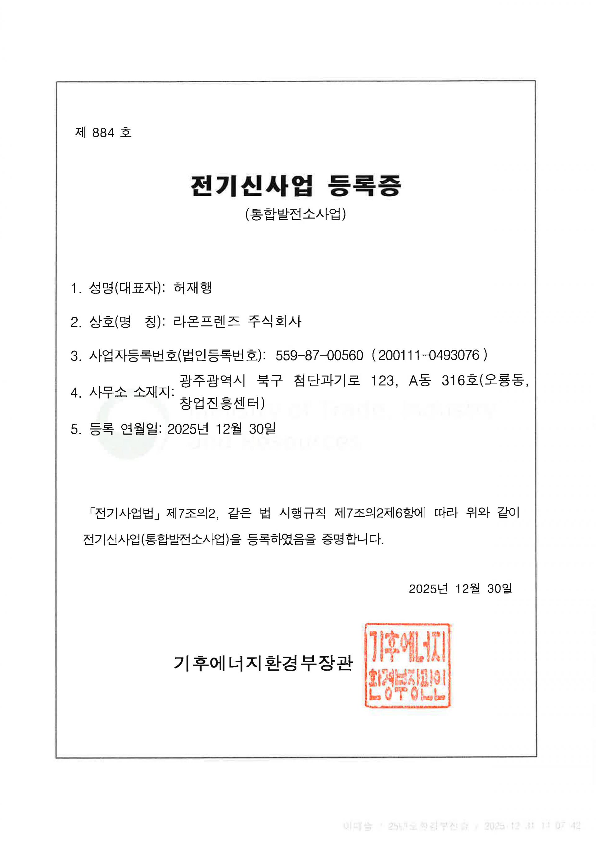 전기신사업 통합 발전소 사업자 등록